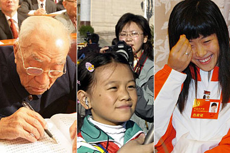 年齡最大的代表——方強(qiáng);年齡最小代表——女子佩劍運(yùn)動員譚雪;年齡最小的記者——吳梓曼。