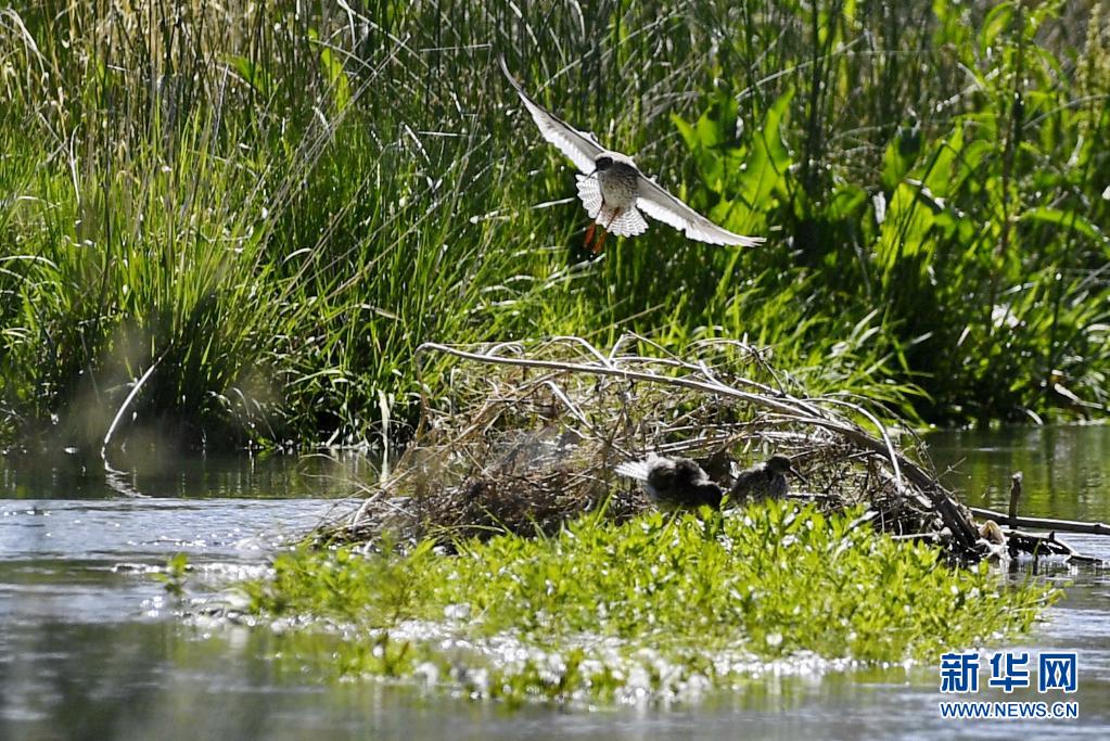 初夏,紅腳鷸在位于西藏拉薩的拉魯濕地國家級自然保護區(qū)內(nèi)起舞覓食。