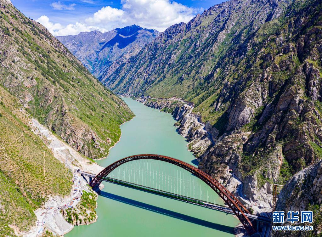 試運(yùn)行的復(fù)興號(hào)列車行駛在藏木特大橋(6月17日攝,無(wú)人機(jī)照片)。