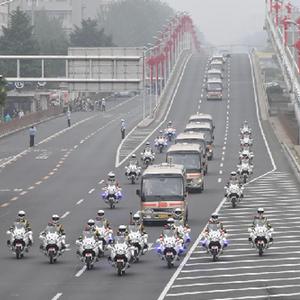 這是“七一勛章”獲得者集體乘坐禮賓車從住地出發(fā),由國賓護衛(wèi)隊護衛(wèi)前往人民大會堂。