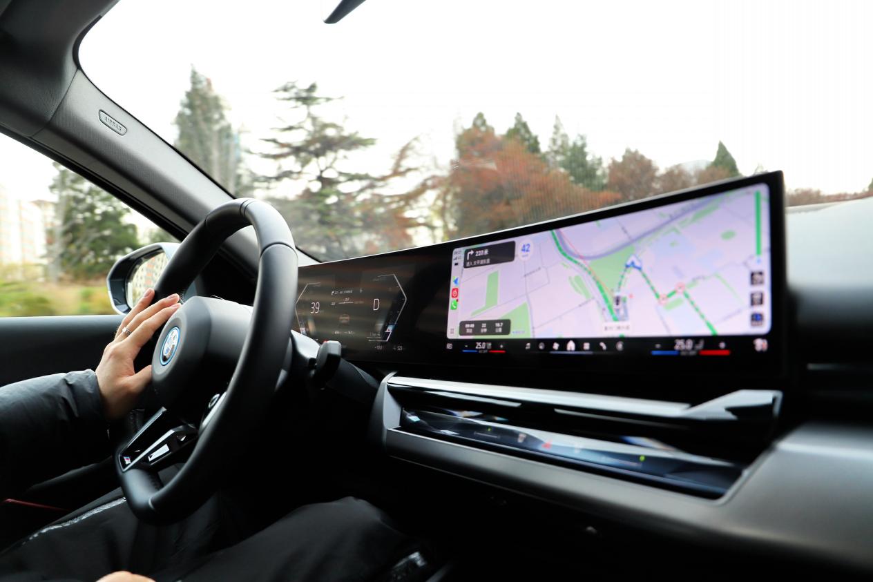 作为M运动套装车型,驾趣是刻在基因里的标签。这台车搭载后置单电机,最大功率240kW(326马力),峰值扭矩410N·m,0-100km/h加速仅需6.7秒。实际驾驶中,电机的动力输出如丝般顺滑却不失爆发力——起步时轻踩电门,动力线性释放;中后段加速时,电机的高扭矩特性让超车变得从容,即便是高速巡航,仍能感受到动力的持续储备。