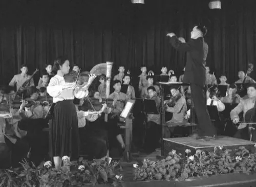 1959年5月27日,小提琴協(xié)奏曲《梁?!吩谏虾Lm心大戲院首演。指揮:樊承武 小提琴:俞麗拿