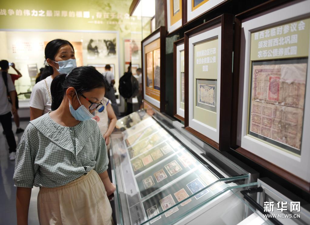 7月7日,觀眾在中國人民抗日戰(zhàn)爭紀(jì)念館參觀“中流砥柱——中國共產(chǎn)黨抗戰(zhàn)文物專題展”。新華社記者 張晨霖 攝