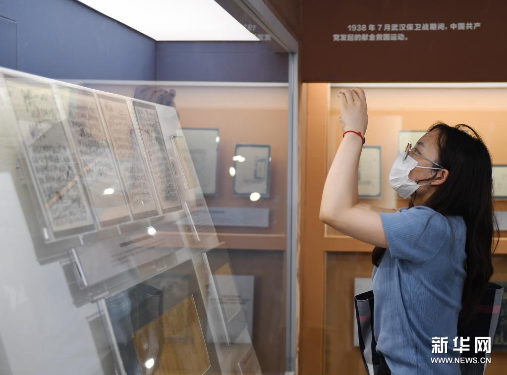 7月7日,觀眾在中國人民抗日戰(zhàn)爭紀念館參觀“中流砥柱——中國共產(chǎn)黨抗戰(zhàn)文物專題展”。新華社記者 張晨霖 攝