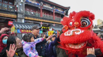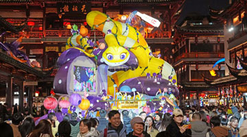 随着农历蛇年临近,广东省深圳市各大年货市场被新年饰品装扮一新,大红灯笼、春联、年画和中国结等春节饰物吸引众多市民前来选购。