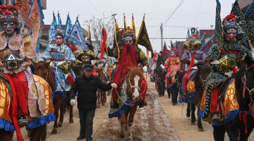 2月12日,在张家界市永定区,当地民间文艺队演员在表演民俗节目。