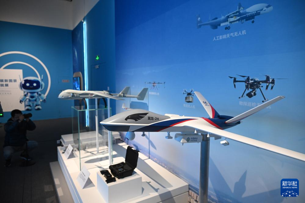 这是2月20日在网络发展新图景成就展上拍摄的无人机模型。