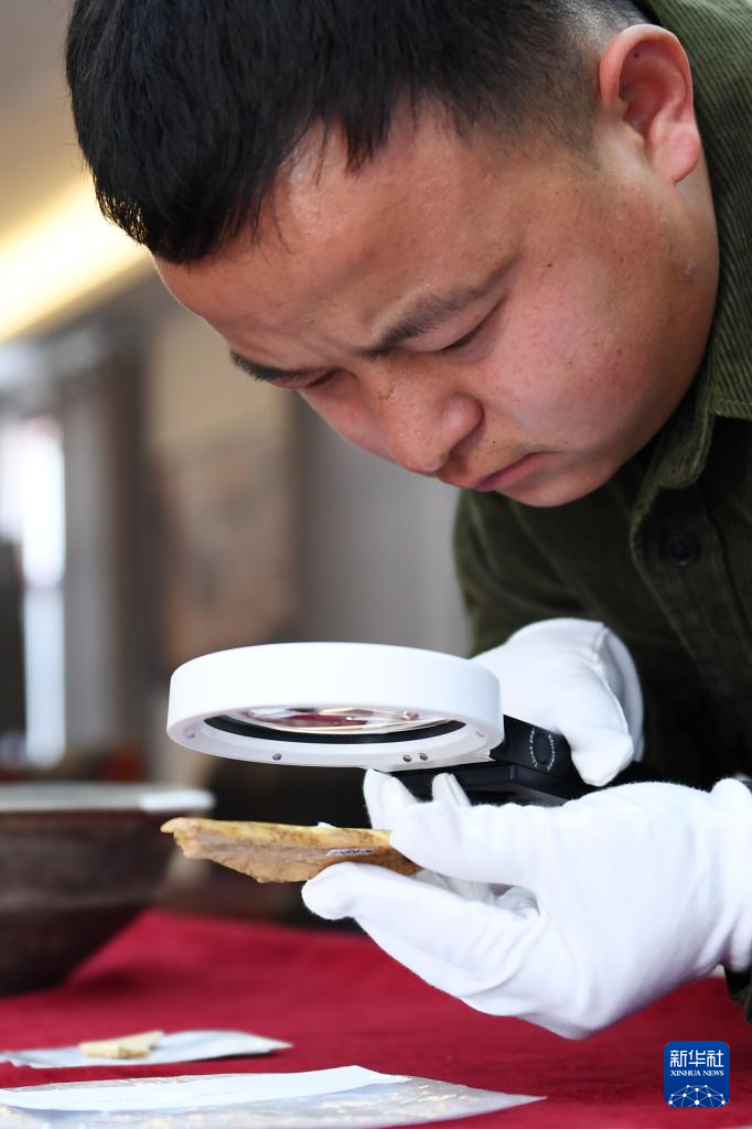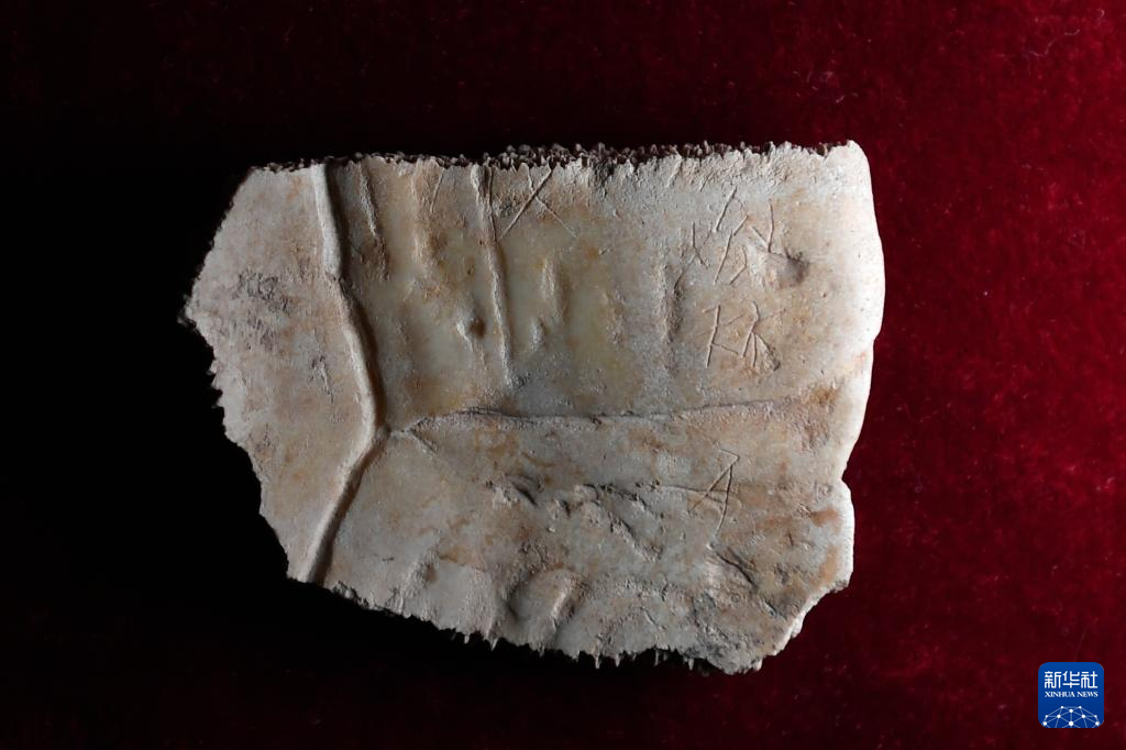这是2025年2月25日拍摄的周原遗址出土刻辞卜骨。新华社记者 李一博 摄