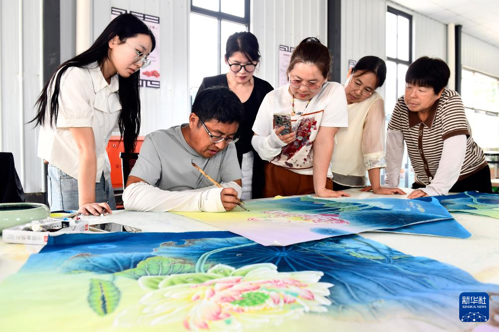 近年来,“中国工笔画之乡”山东省菏泽市巨野县积极发展乡村文化创意产业,设立专项资金扶持书画创作,并开展农民画师免费培育工程。目前,巨野县有8个绘画专业镇、50个绘画专业村、65家基层画院,工笔画已成为当地乡村振兴的新引擎。