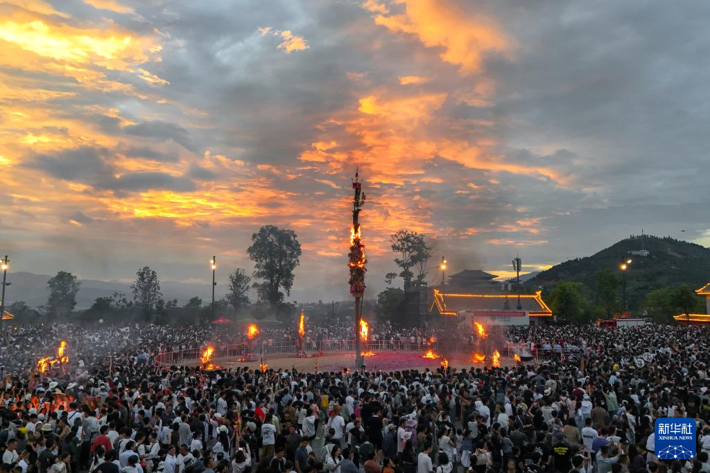7月19日晚,2025年巍山火把节在云南省大理白族自治州巍山彝族回族自治县的圣火广场开幕。开幕式上,当地精心组织了文艺演出、篝火晚会、烟花表演等,数万名当地群众与来自各地的游客欢聚一堂,共度节日。