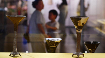 7月21日,人们在国博参观仰韶文化鹰形陶鼎。