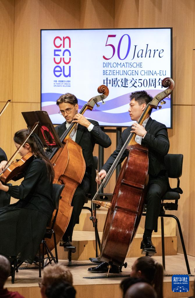 8月13日,在德国法兰克福克伦贝格音乐学院卡萨尔斯音乐厅,中德音乐家为观众演奏。