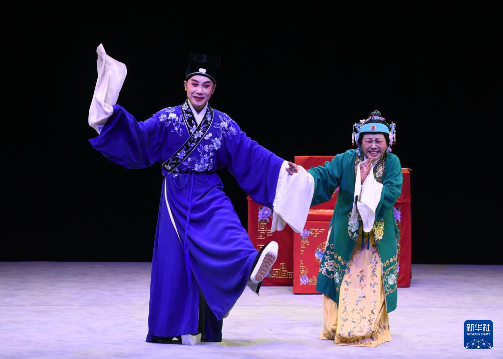 10月21日,在奥地利首都维也纳,演员在表演锡剧《珍珠塔》。