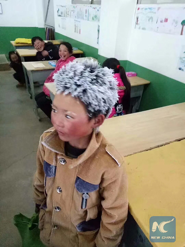 BEIJING, Jan. 11 (Xinhua) -- After images of a boy who arrived at school with hair full of frost and hands covered in chilblains went viral Monday, donations have flooded in to help the school, with 100,000 RMB (about 15,000 U.S. dollars) raised as of Wednesday morning.