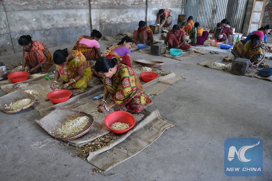 Indian women work in a Cashew nut factory on the International women's day, on the outskirts of Agartala, capital of the northeastern state of Tripura, India, March 8, 2018. (Xinhua/Stringer)