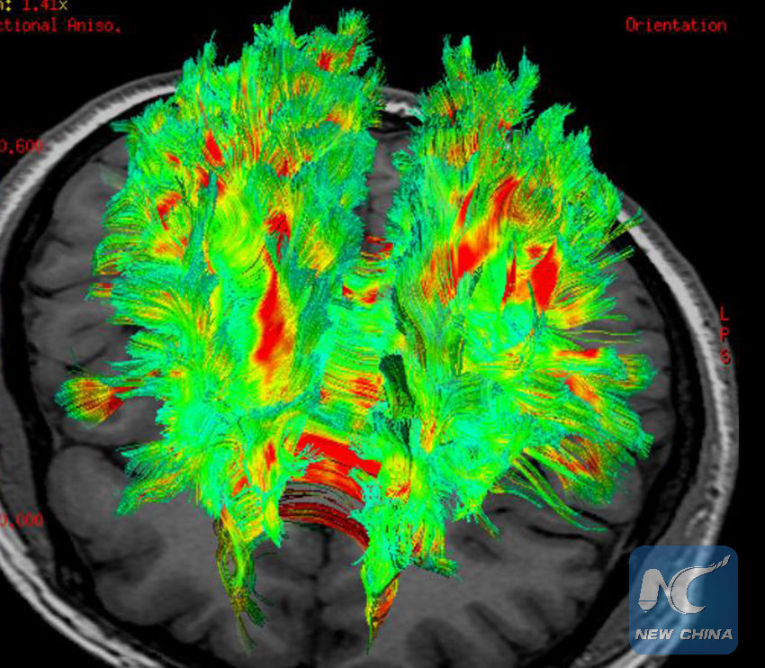 Photo provided by Xinqiao Hospital of Third Military Medical University in southwest China's Chongqing on Aug. 5, 2015 shows a 3D image of white matter of brain by 3.0 tesla (3.0T) MRI.