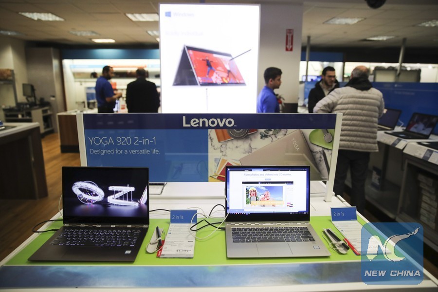 Laptops made in China are on sale at a Best Buy store in New York, the United States, on March 22, 2018. Despite strong warnings from business groups and trade experts, U.S. President Donald Trump on Thursday signed a memorandum that could impose tariffs on up to 60 billion U.S. dollars of imports from China, the latest unilateral move that poses a threat to global trade. (Xinhua/Wang Ying)