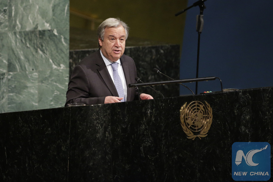 United Nations Secretary-General Antonio Guterres speaks during an event to commemorate the international day of reflection on the Rwanda genocide, at the United Nations headquarters in New York, April 13, 2018. (Xinhua/Li Muzi)