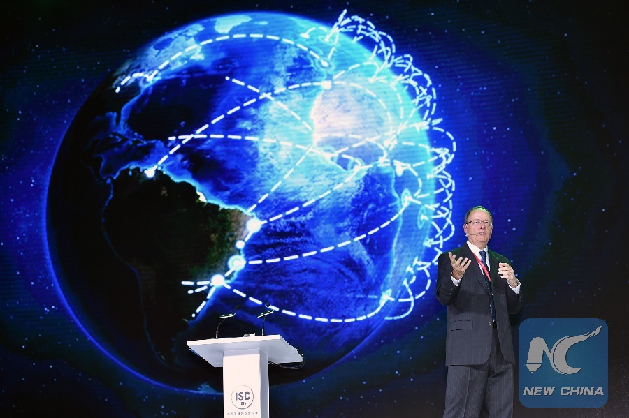 Keith B. Alexander, first commander of the U.S. Cyber Command and former chief of the National Security Agency, speaks during the 2015 China Internet Security Conference in Beijing, capital of China, Sept. 29, 2015. A total of 120 experts from China, U.S., Israel, Australia, South Korea, etc. took part in the two-day conference that kicked off here Tuesday. (Xinhua/Li Xin)
