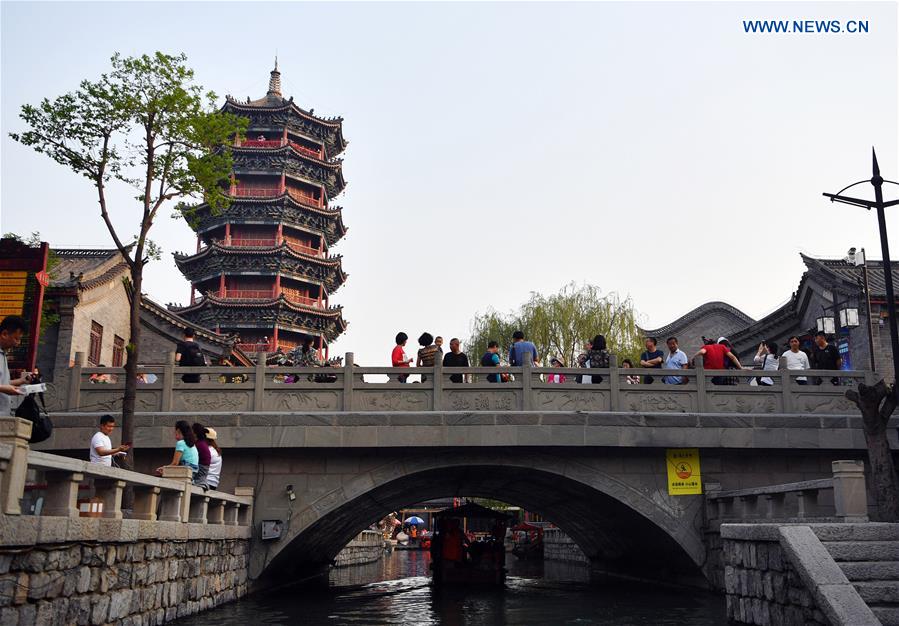 Tourists visit the Luanzhou Ancient City in Luanxian County, north China's Hebei Province, April 29, 2018. The Luanzhou Ancient City attracted many tourists during the Labor Day holiday. (Xinhua/Jin Liangkuai)