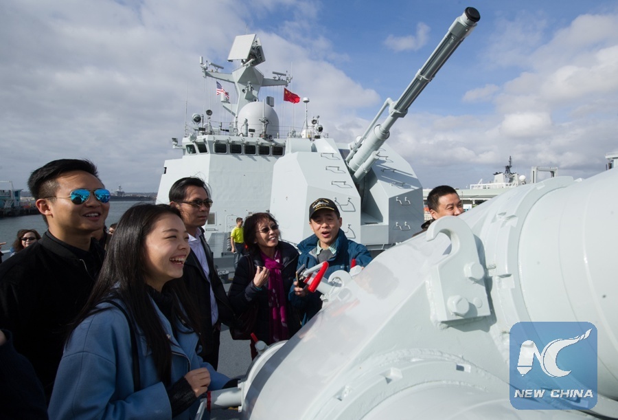 Local Chinese-Americans visit Chinese Navy's missile frigate "Yancheng" in San Diego, the United States, Dec. 6, 2016. (Xinhua/Yang Lei)