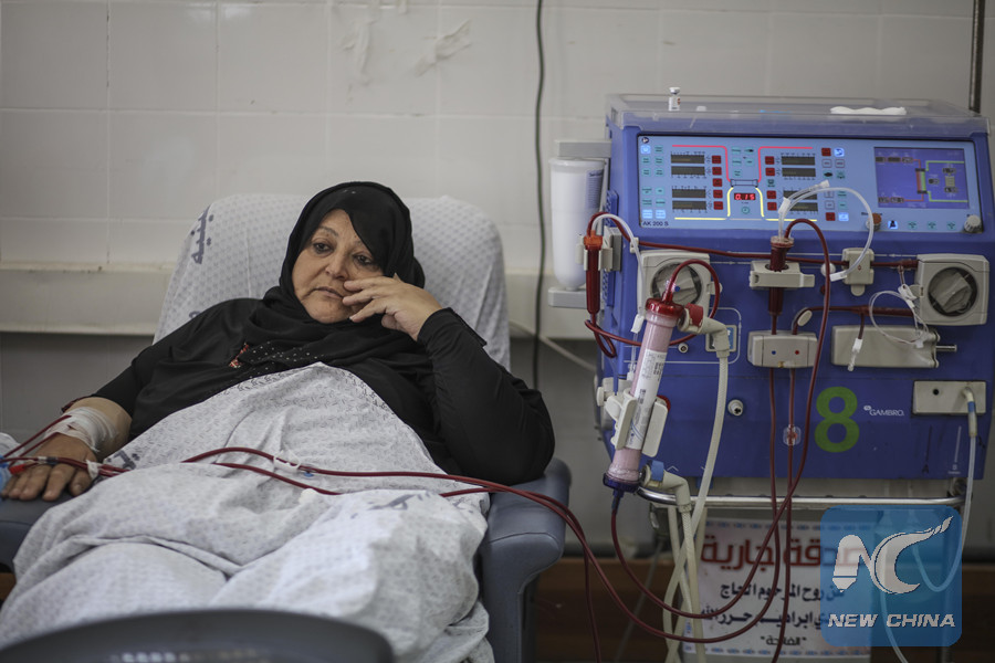 A Palestinian patient receives treatment at the department of kidney dialyses at a hospital, during the worsening crisis of power outages, in the Gaza City, on Aug. 14, 2017. (Xinhua File photo)