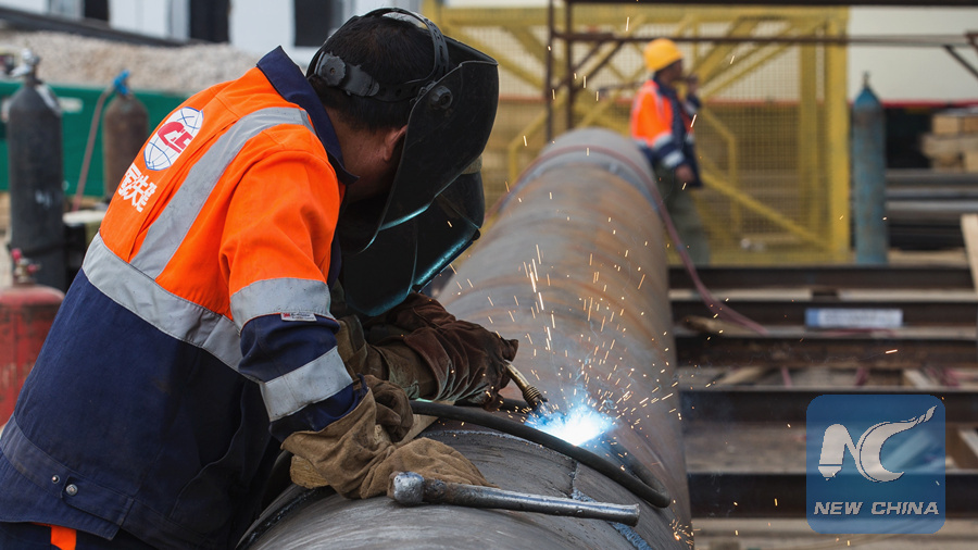 Chinese and Russian workers work at an automobile-level float glass production line in the Russian factory of China's Fuyao Glass Industry Group Co. in Kaluga, Russia, July 18, 2017. (Xinhua/Wu Zhuang)