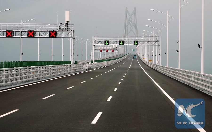 HONG KONG, Oct. 25 (Xinhua) -- After nine years of construction, the world's longest bridge, the Hong Kong-Zhuhai-Macao Bridge, has opened to traffic, giving a strong boost to the development of the Guangdong-Hong Kong-Macao Greater Bay Area.
