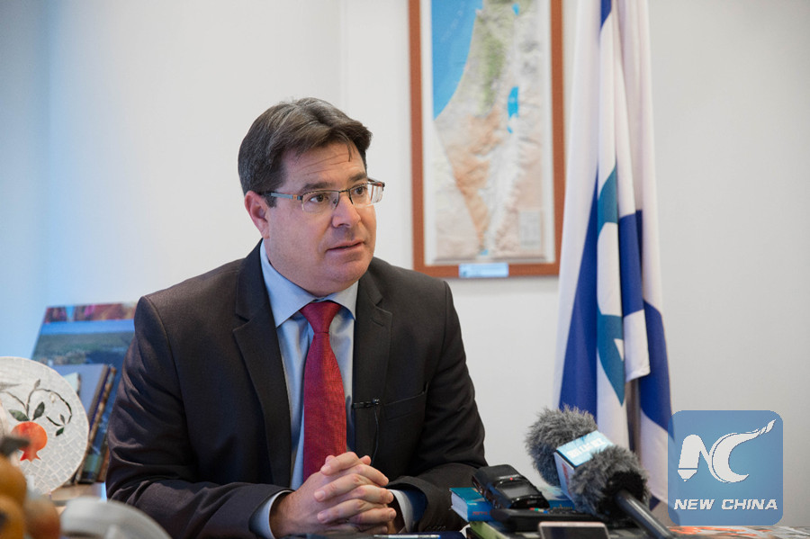 Ofir Akunis, minister of Israeli Ministry of Science and Technology, speaks with Xinhua in an interview in Tel Aviv, central Israel, on Nov. 1, 2018. (Xinhua/Guo Yu)