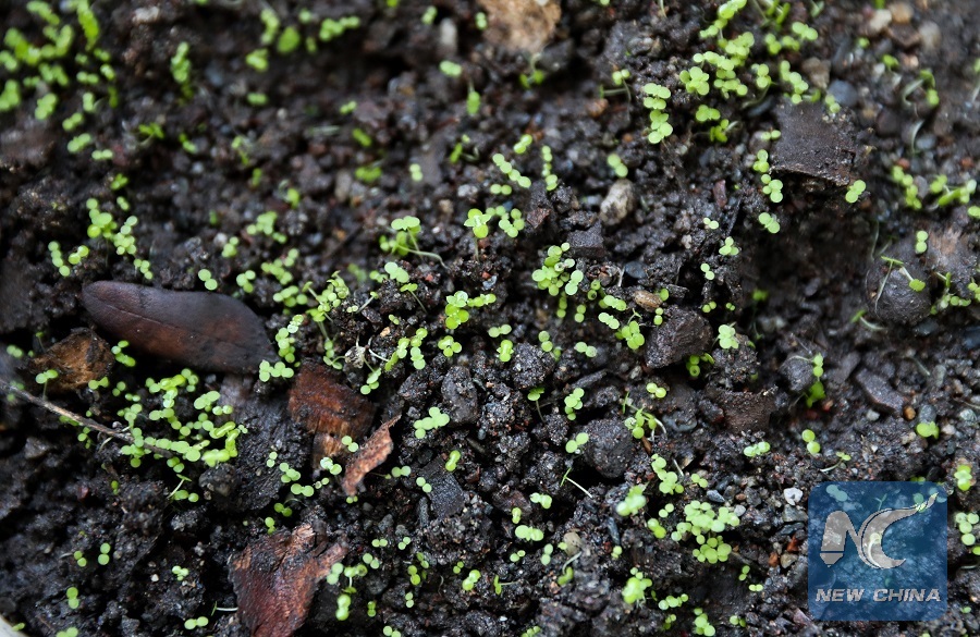 Photo taken on Nov. 10, 2018 shows the seedling of Artemisia annua at China (Guangdong)-Papua New Guinea (PNG) anti-malaria center in Port Moresby, Papua New Guinea. (Xinhua Bai Xuefei)