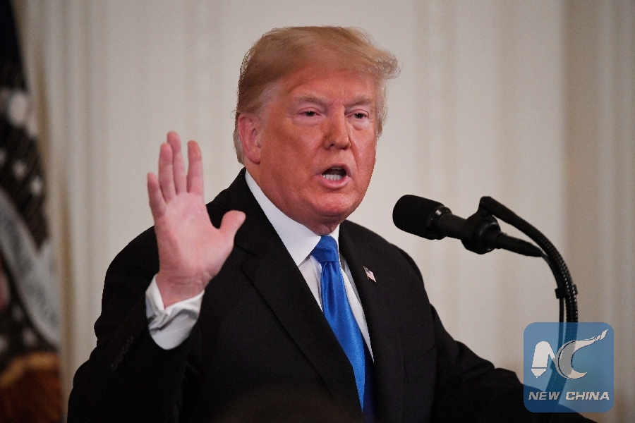 File Photo: U.S. President Donald Trump attends a press conference at the White House in Washington D.C., the United States, on Nov. 7, 2018. (Xinhua/Hu Yousong)