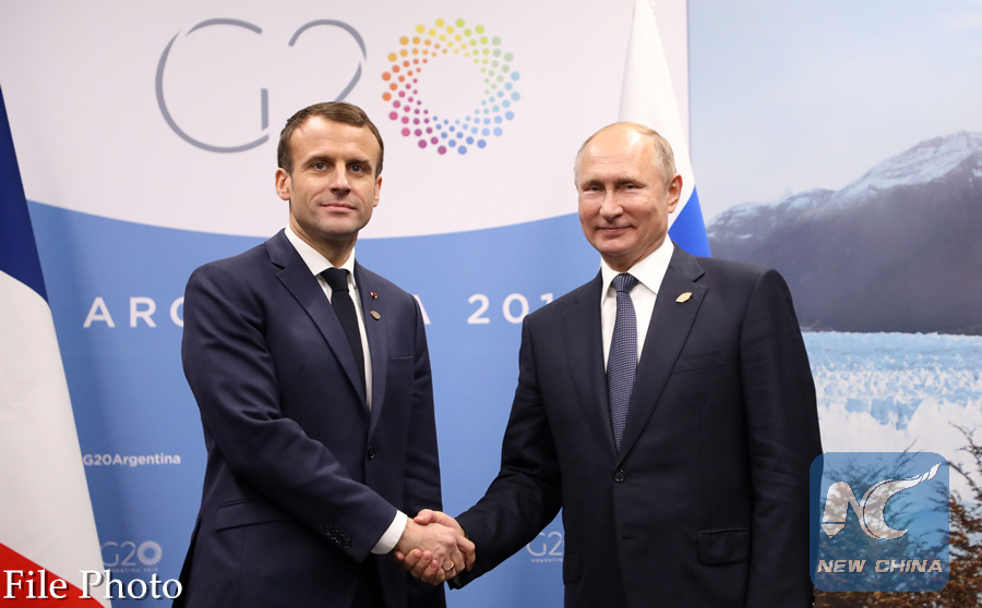 MOSCOW, Jan. 2 (Xinhua) -- Russian President Vladimir Putin and his French counterpart Emmanuel Macron discussed the Syrian settlement and Ukraine-related issues over the phone on Wednesday.