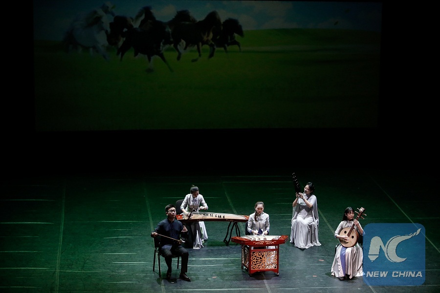 Chinese artists perform during a show titled "Happy Chinese New Year 2019" in Thessaloniki, Greece, Jan. 28, 2019. (Xinhua/Dimitris Tosidis)