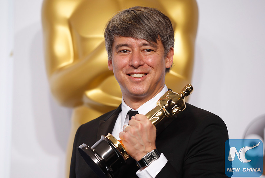 File photo: Tom Cross poses with the Oscar for best film editing for "Whiplash" during the 87th Academy Awards in Hollywood, California, Feb. 22, 2015. (Xinhua/Reuters)