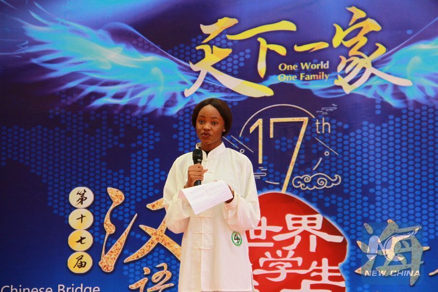 File photo shows a student takes part in the 17th Chinese-Bridge Proficiency Competition for College students in Windhoek, capital of Namibia, April 26, 2018. (Xinhua/Wu Changwei)