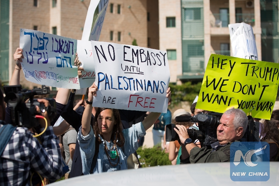 File Photo: People protest against the new U.S. embassy in Jerusalem, on May 14, 2018. (Xinhua/Guo Yu)