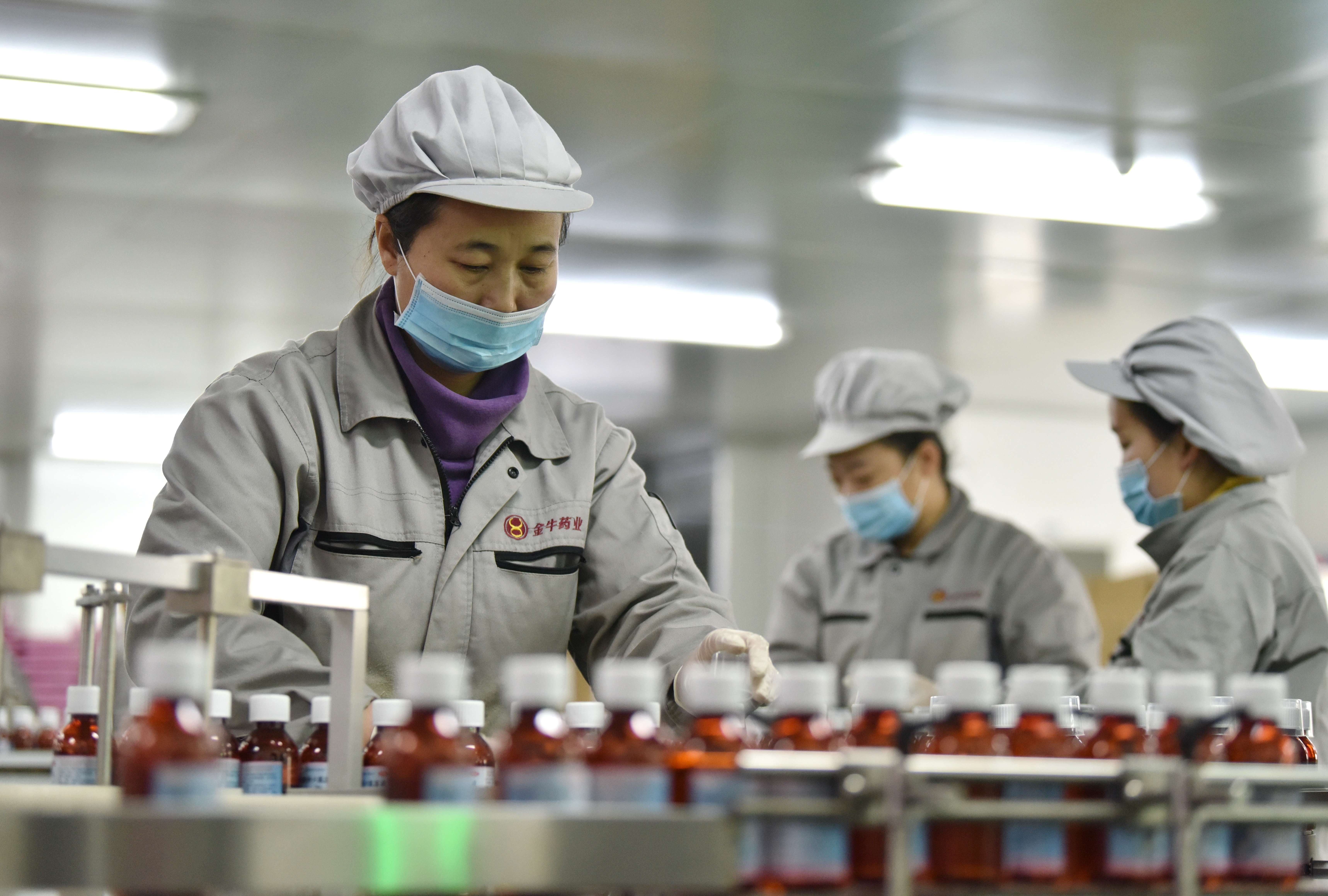Workers at a workshop of a medicine factory in Dingzhou City, north China's Hebei Province, Dec. 15, 2018. (Xinhua/Zhu Xudong)