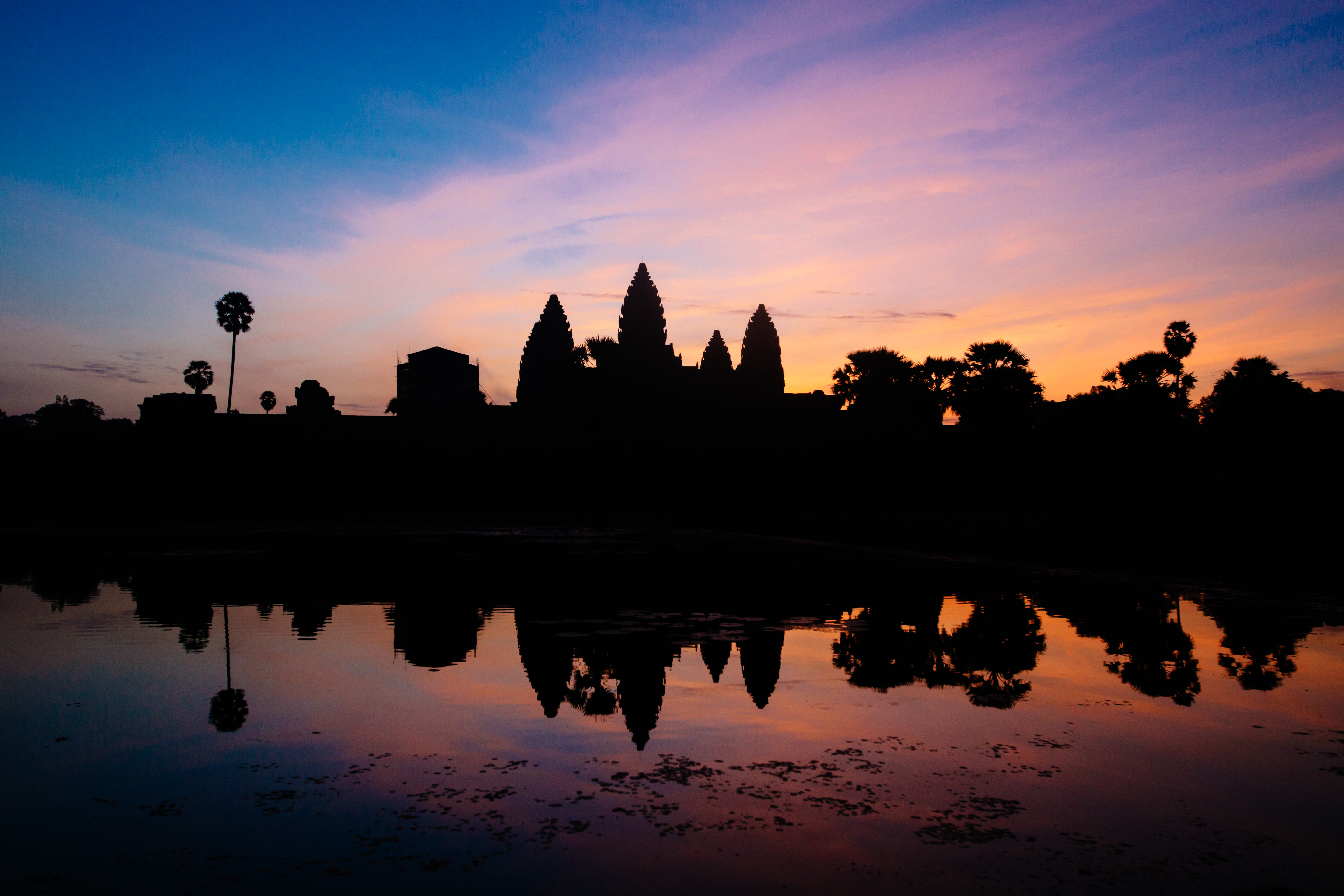 Photo taken on Oct. 20, 2016 shows the silhouette of Angkor Wat temple in Siem Reap Province, Cambodia. (Xinhua/Zhang Cheng)