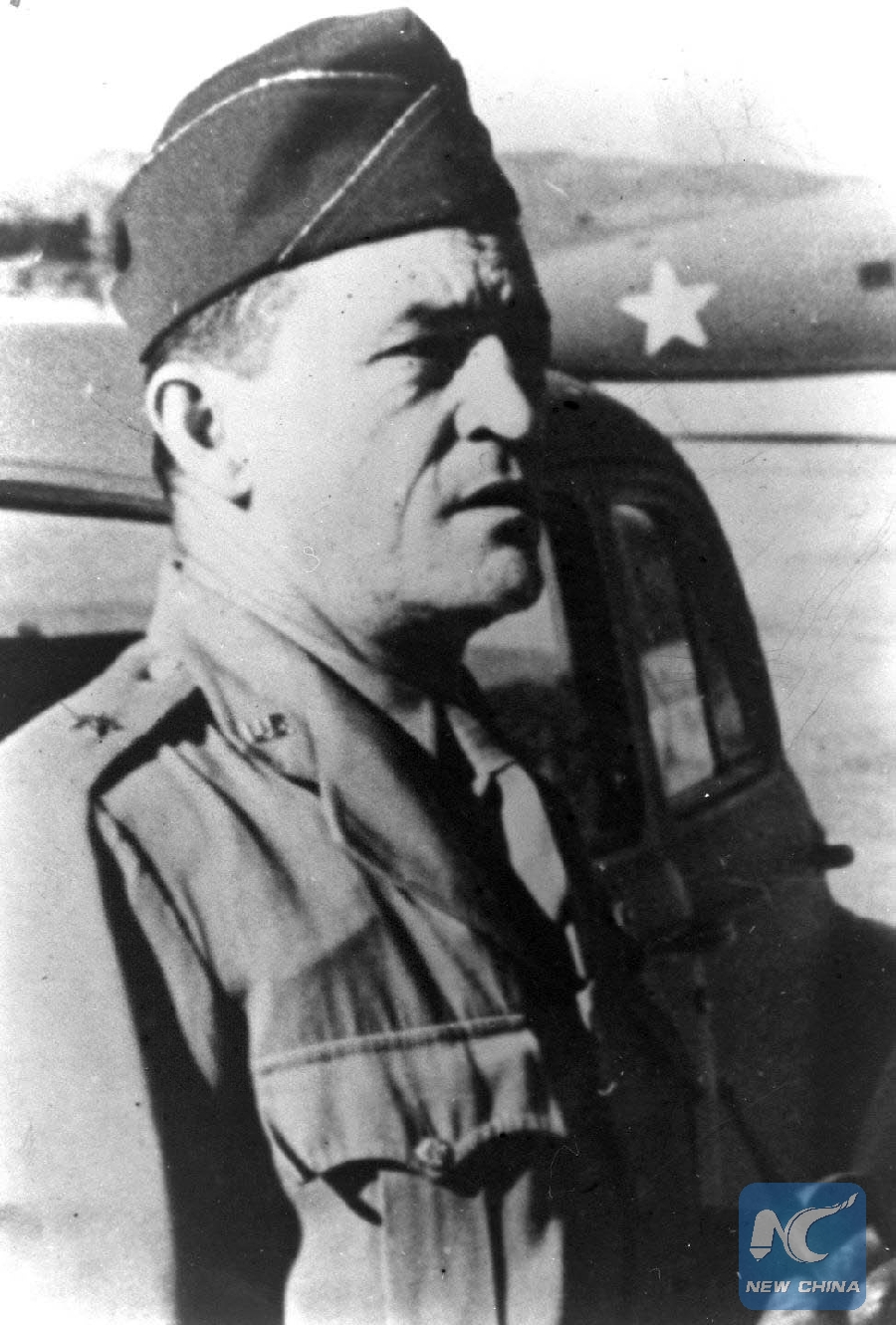 The file photo shows late U.S. General Claire Lee Chennault, who headed the wartime Flying Tigers pilots to fight against Japanese invaders in China during World War II (WWII). (Xinhua)