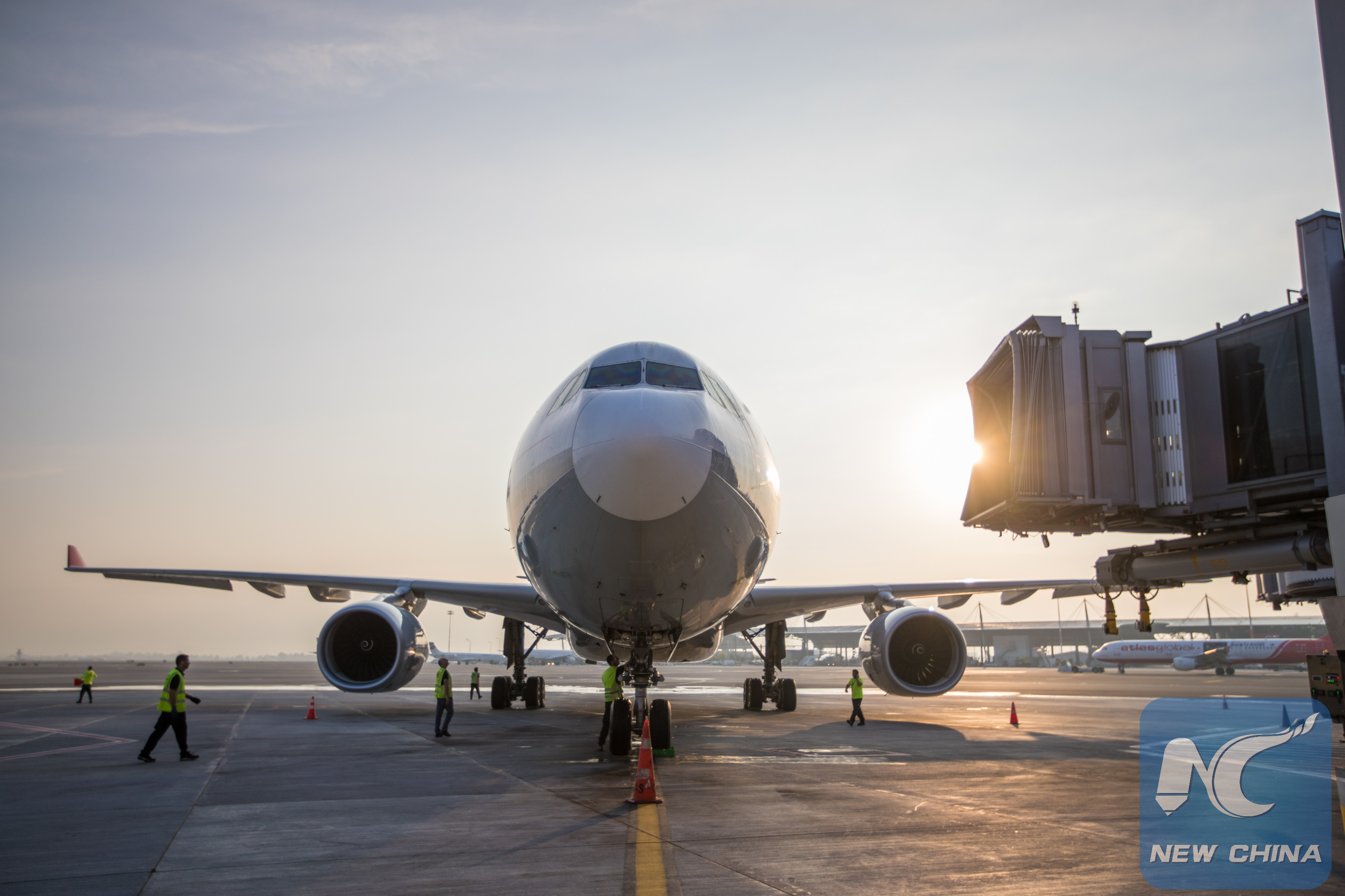 A Sichuan Airlines plane lands at Ben Gurion international airport near Tel Aviv, Israel, on Sept. 26, 2018. (Xinhua/Guo Yu)