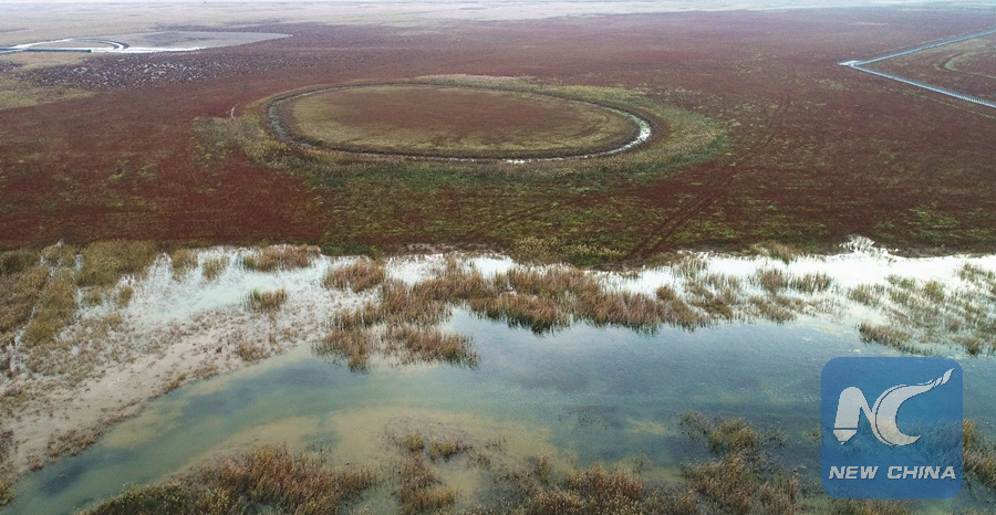 Aerial photo shows scenery of the Yancheng Wetland and Rare Birds National Nature Reserve in east China's Jiangsu Province, Nov. 15, 2017. (Xinhua/Ji Chunpeng)