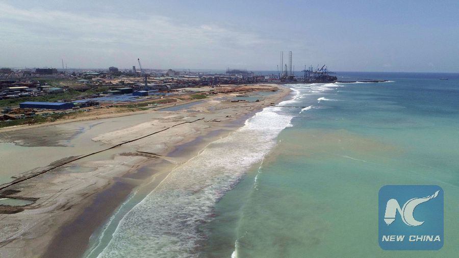 Aerial photo taken on May 31, 2018 shows the Tema Port in Tema, Ghana. In the past five years, China and African nations have deepened political mutual trust, mutual assistance in development and mutual learning in visions, and made concerted efforts in building the Belt and Road and a closer China-Africa community with a shared future. (Xinhua/Wu Lu)