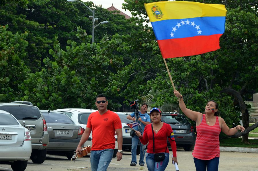 People take part in the March in Solidarity with Venezuela in Havana, Cuba, on Aug. 25, 2017. (Xinhua/Joaquin Hernandez)