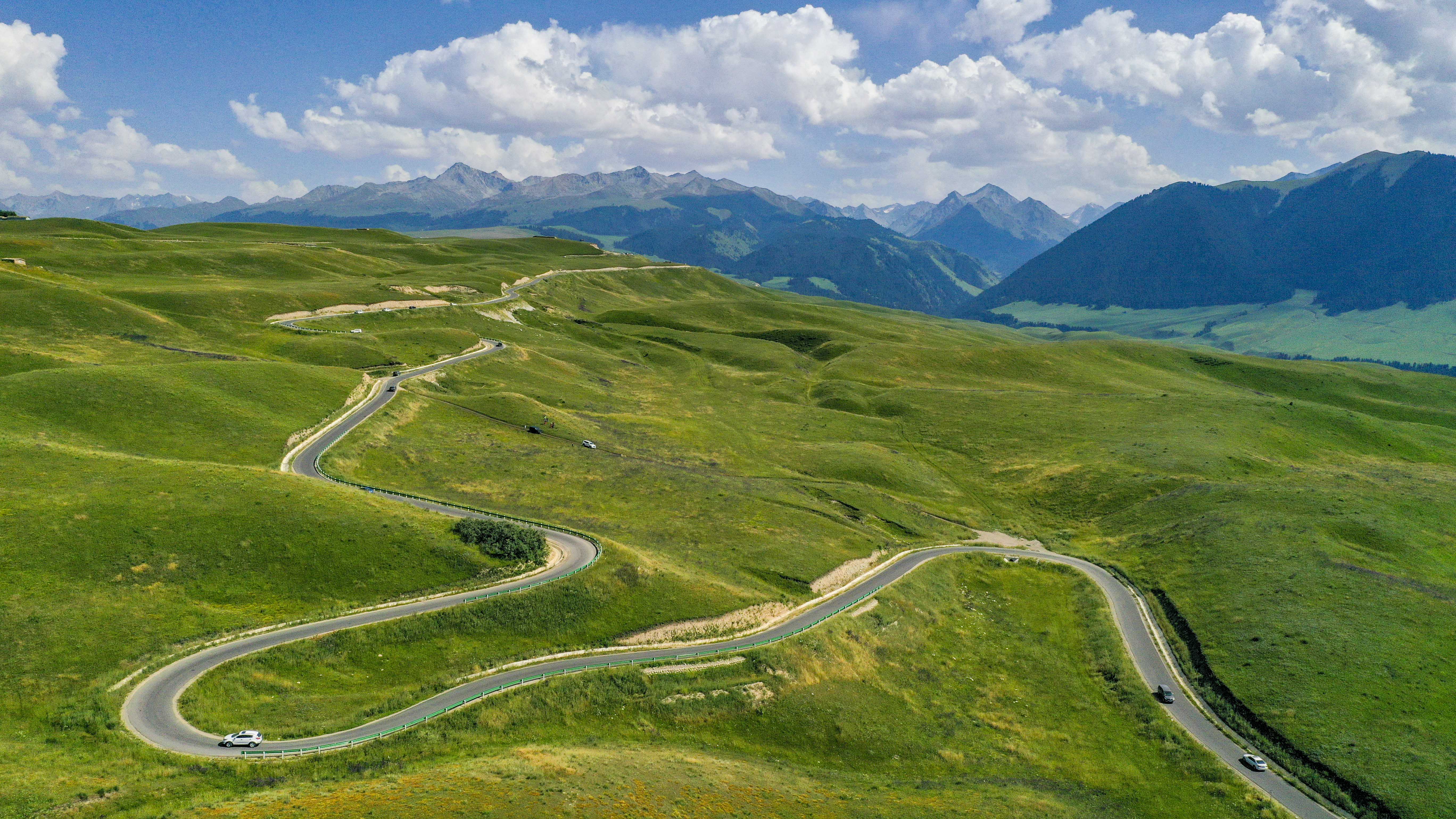 Vehicles on a road to Qiongkushitai Village in Karadala Township in Tekes County, NW China's Xinjiang Uygur Autonomous Region. (Xinhua/Hu Huhu)