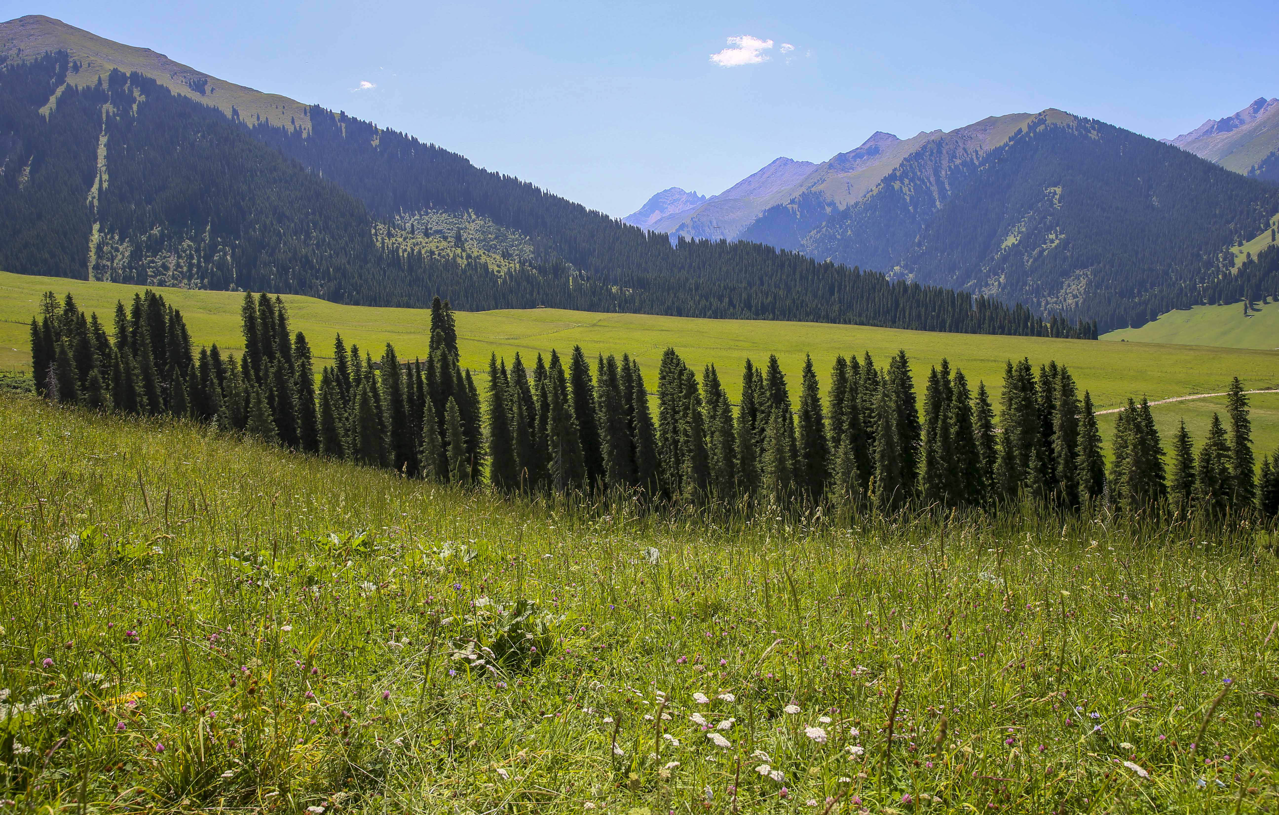 TEKES, Aug. 16, 2019 (Xinhua) -- Located in remote mountains, Qiongkushitai Village in Karadala Township, Tekes County of NW China's Xinjiang Uygur Autonomous Region, has well preserved its traditional nomadic lifestyle and outstanding natural environment.