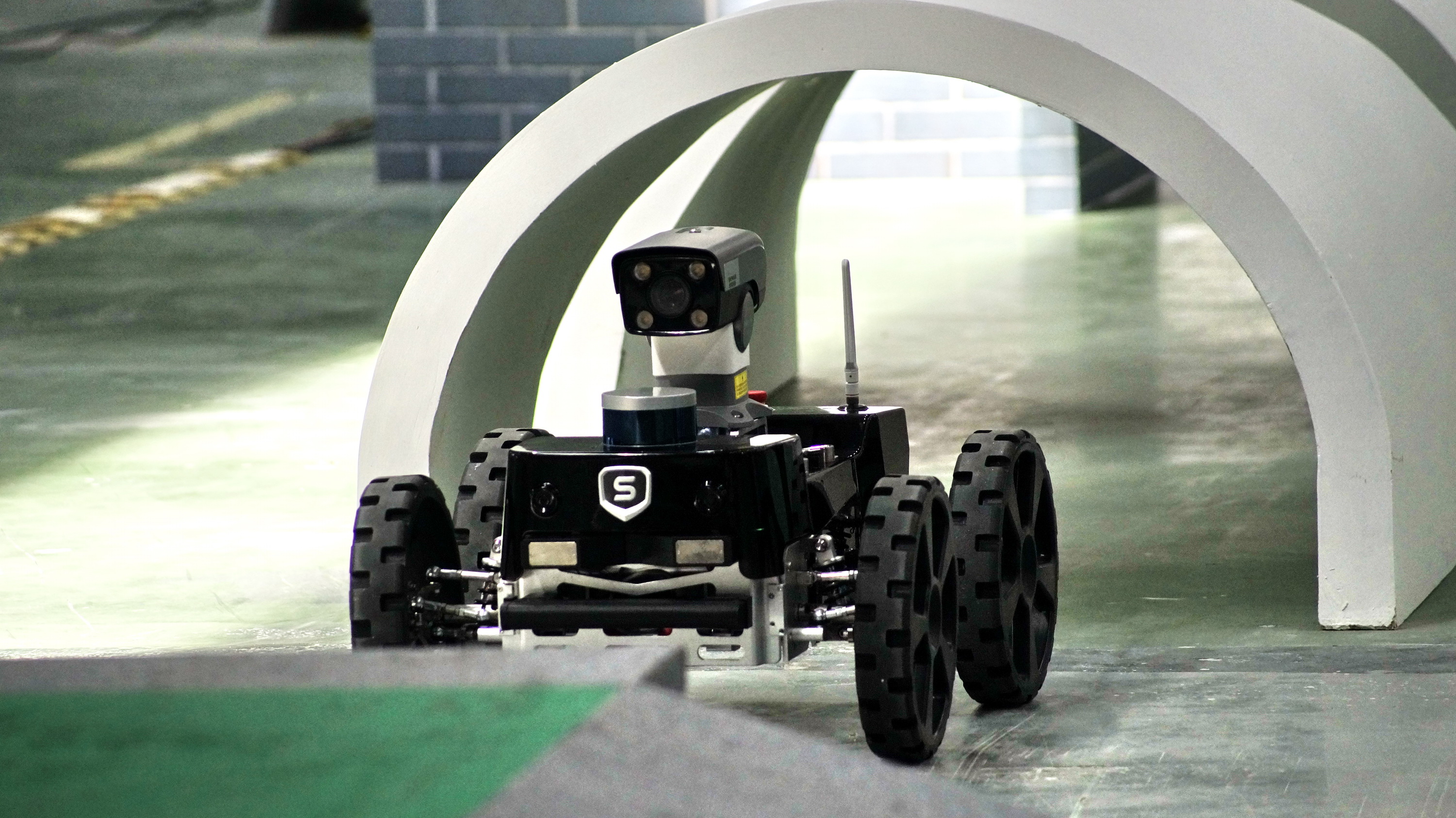 Photo taken on Aug. 21, 2019 shows a pipeline patrolling robot exhibited at the World Robot Exhibition in Beijing, capital of China. (Xinhua/Li Xin)