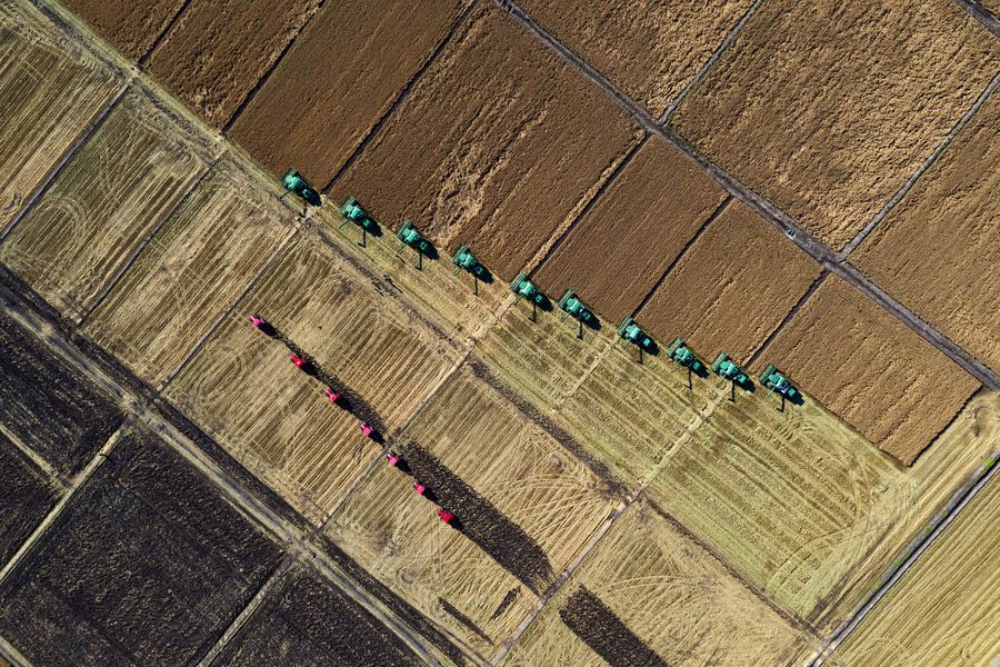 Machinery working at Qindeli Farm of Jiansanjiang, an important grain production base, in northeast China's Heilongjiang Province. (Xinhua/Xie Jianfei)