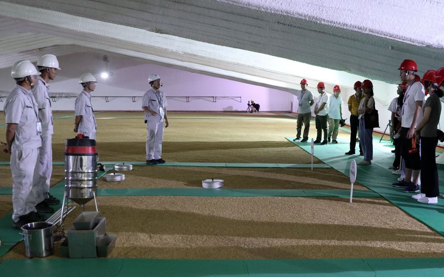 People attend an open day event at a grain depot of Sinograin in Guangzhou, capital of south China's Guangdong Province, Oct. 14, 2019. (Xinhua/Huang Guobao)