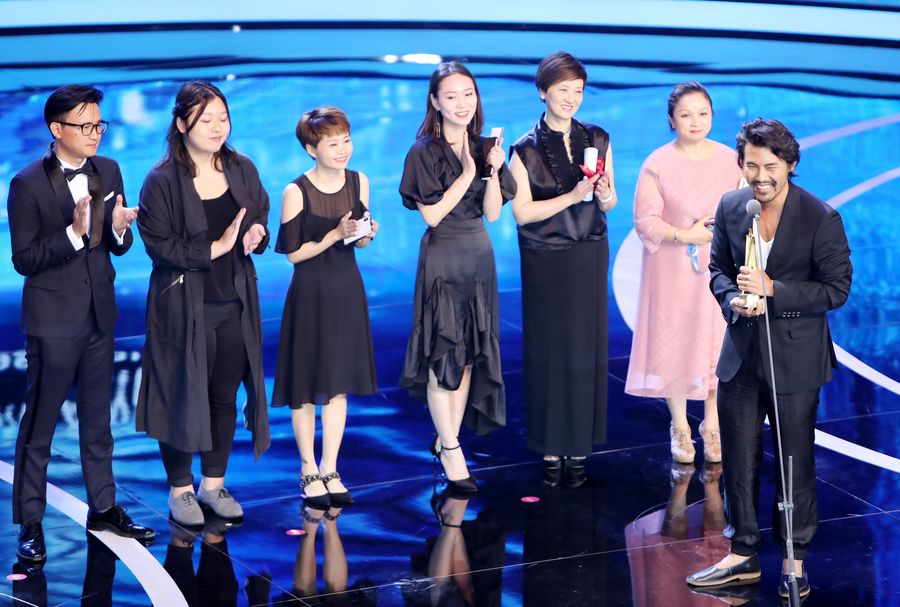 Cast members of the Chinese film "To Live To Sing" attend the Asian New Talent Award section of the 22nd Shanghai International Film Festival in Shanghai, east China, June 21, 2019. (Xinhua/Fang Zhe)