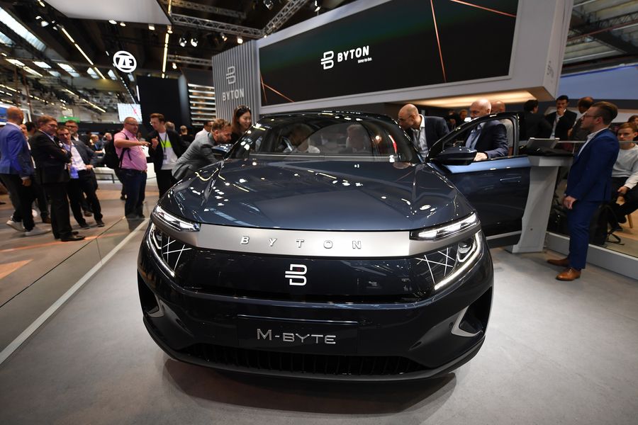 A Byton M-Byte is on display during the first press day of Germany's International Motor Show (IAA) 2019 in Frankfurt, Germany, on Sept. 10, 2019. (Xinhua/Lu Yang)